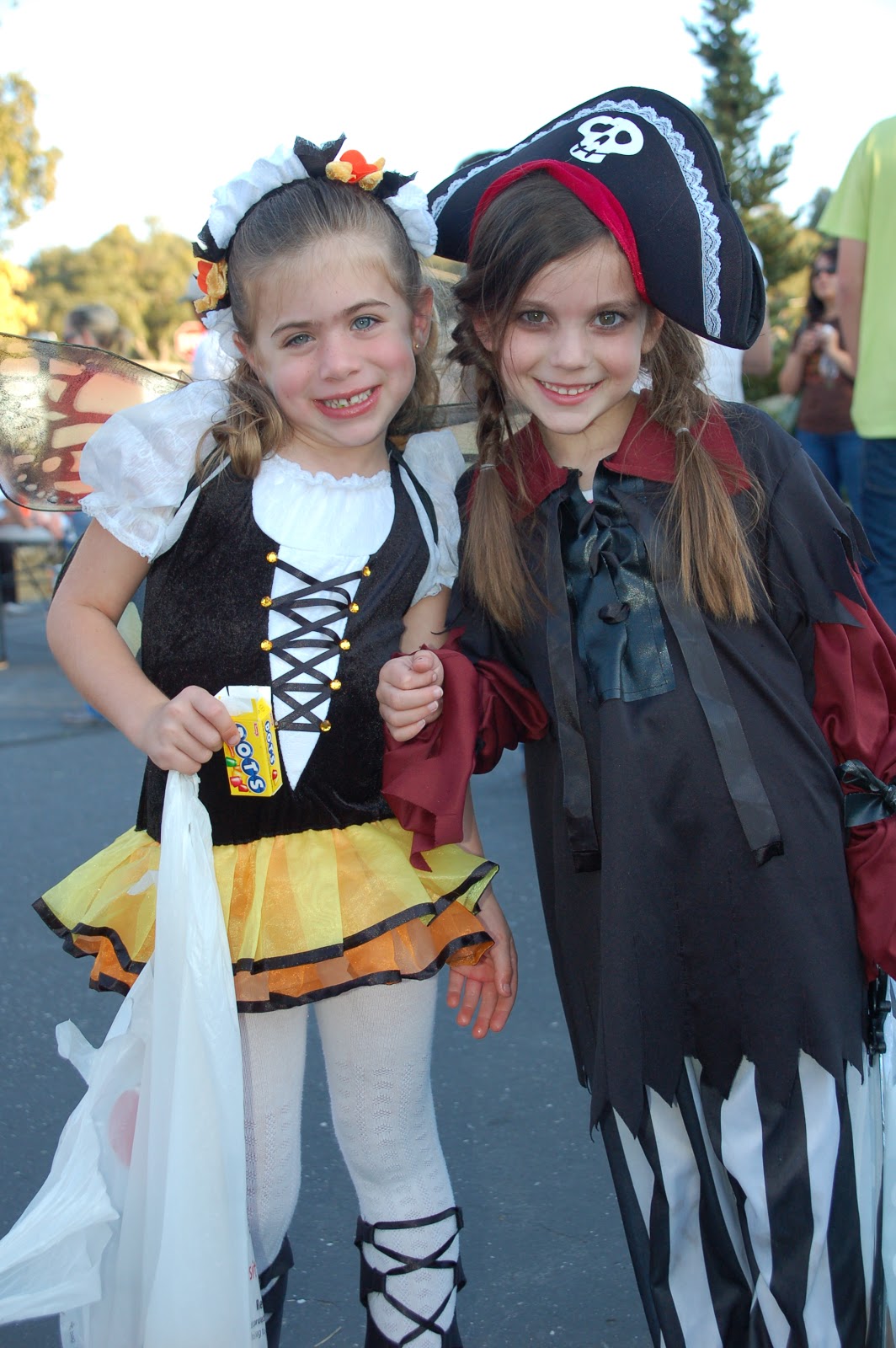 Emmy is a pirate. She was going to be Belle, but the day of decided she wanted to do something different. She pieced together old outfits that we had from years past and made a pretty scary pirate!!! After we put on her eye make-up, Brian told her that she looked like a rebellious teenager and Emmy was completely offended!!! (let's hope it stays that way!)